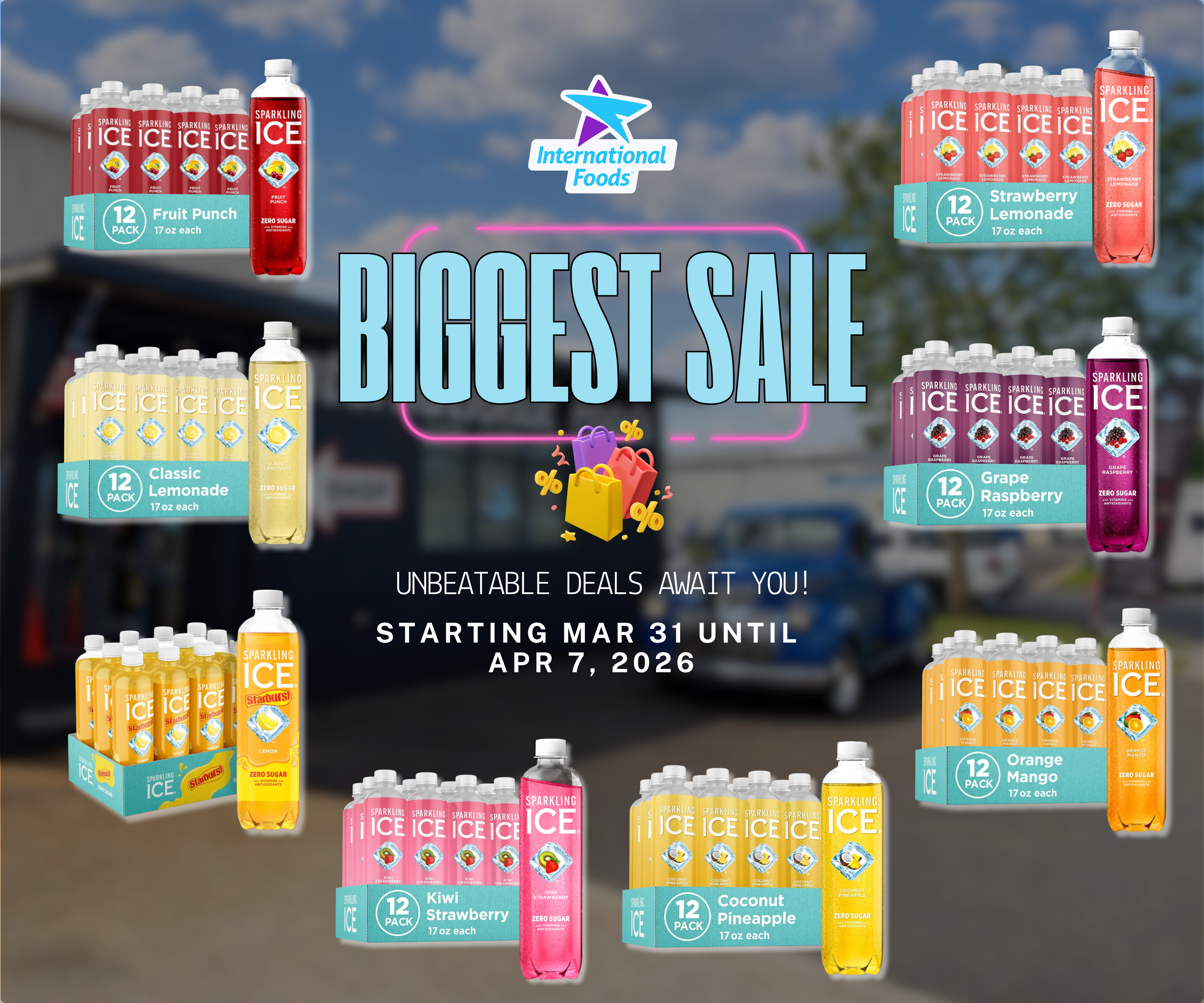 DATED - DEC 2025 Sparkling ICE - Fruit Punch Flavoured Sparkling Water 17oz (500ml) 12ct