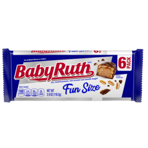 Snack time made fun-sized! Treat your taste buds to Baby Ruth's chewy, chocolatey goodness in a convenient 6-pack. Perfect for on-the-go snacking.