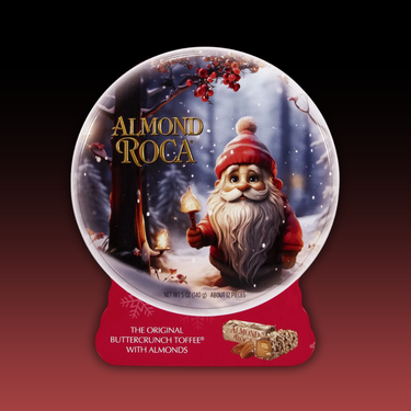 Brown & Haley Almond Roca Snow Globe Tin (5oz / 140g) is a charming holiday gift filled with the iconic Almond Roca buttercrunch toffee. Each piece combines rich, crunchy toffee, smooth chocolate, and almond bits for a timeless, indulgent treat. Packaged in a festive snow globe-inspired tin, it’s a delightful way to share or savor this holiday season classic.