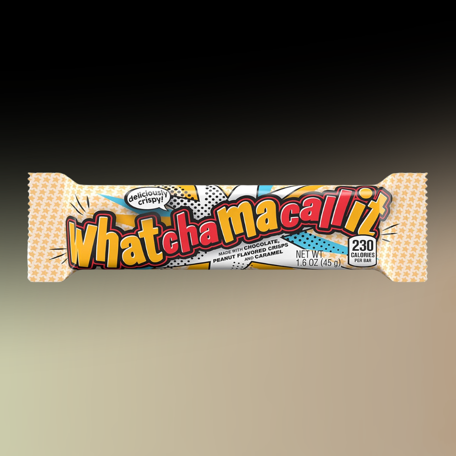 Whatchamacallit is the ultimate throwback candy bar — packed with crunchy peanut-flavoured crisps, a gooey caramel layer, and covered in a smooth chocolatey coating.