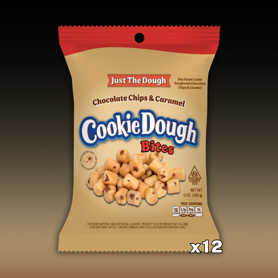 DATED - Dec 2025 Cookie Dough Bites Just The Dough Choc Chip & Caramel Peg Bag 12ct