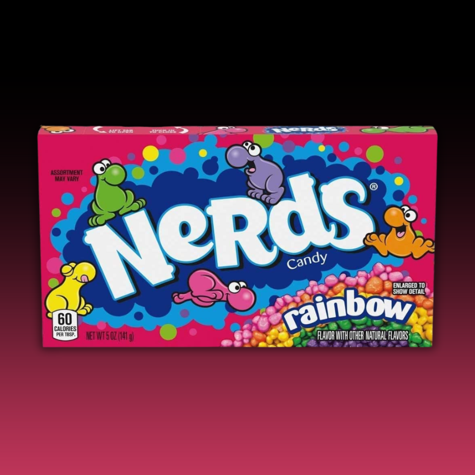 The Wonka Rainbow Nerds Theatre Box is a colorful and flavorful candy treat that's perfect for enjoying while watching a movie or any time you're craving something sweet. Inside the box, you'll find an assortment of tiny, tangy, crunchy candy nuggets in a variety of bright colors. Each Nerd has its own unique fruit flavor, including grape, strawberry, orange, and lemon. With its combination of sweet and tart flavors and crunchy texture, Rainbow Nerds offer a fun and exciting snacking experience. Plus, the vibrant colors make them visually appealing and great for sharing with friends or adding a pop of color to candy buffets or party favors.