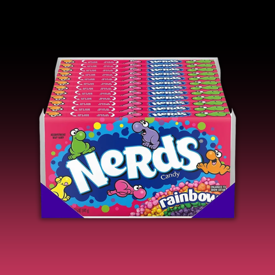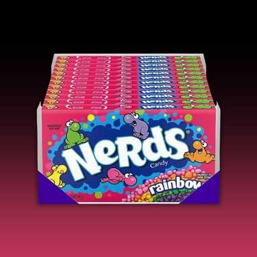 The Wonka Rainbow Nerds Theatre Box is a colorful and flavorful candy treat that's perfect for enjoying while watching a movie or any time you're craving something sweet. Inside the box, you'll find an assortment of tiny, tangy, crunchy candy nuggets in a variety of bright colors. Each Nerd has its own unique fruit flavor, including grape, strawberry, orange, and lemon. With its combination of sweet and tart flavors and crunchy texture, Rainbow Nerds offer a fun and exciting snacking experience. Plus, the vibrant colors make them visually appealing and great for sharing with friends or adding a pop of color to candy buffets or party favors.