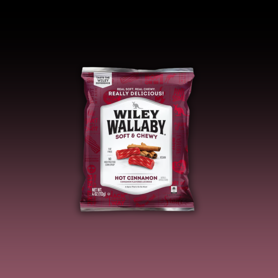 Wiley Wallaby Gourmet Hot Cinnamon Licorice is so soft & chewy, so bursting with terrific taste, you need look no further for the satisfaction you crave. We packed it so full of cinnamon flavor, there was less room left for the things you could do without. Fat Free and absolutely no dairy or high fructose corn syrup makes Wiley Wallaby the candy your conscience feels better about, too. Win-win-win!