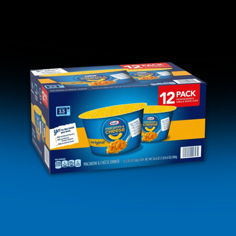 Enjoy the classic comfort of Kraft Macaroni & Cheese in a convenient, single-serving cup. Each cup contains macaroni pasta and original flavour cheese sauce mix, making it easy to prepare a delicious meal or snack in just minutes. Simply add water, microwave, and enjoy the creamy, cheesy goodness that has made Kraft a household favourite.