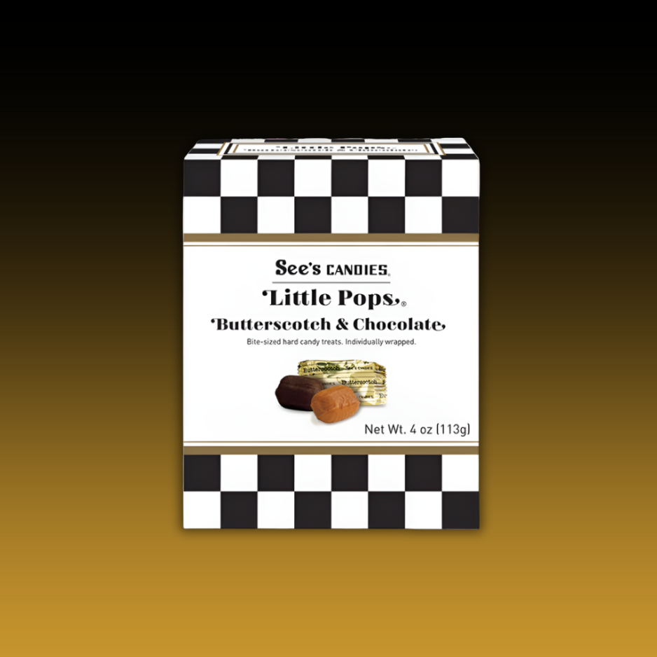 See's Candies Butterscotch and Chocolate Mini Pops: Small pops, big flavor! These bite-sized lollipops are a perfect mix of rich, creamy butterscotch and luscious chocolate. It's not just candy; it's a long-lasting, delicious treat that's perfect for savoring anytime!