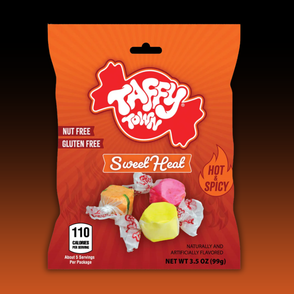 Taffy Town SWEET HEAT Salt Water Taffy: A bold blend of sweet and spicy in every chewy bite! Feel the heat with a tangy twist!