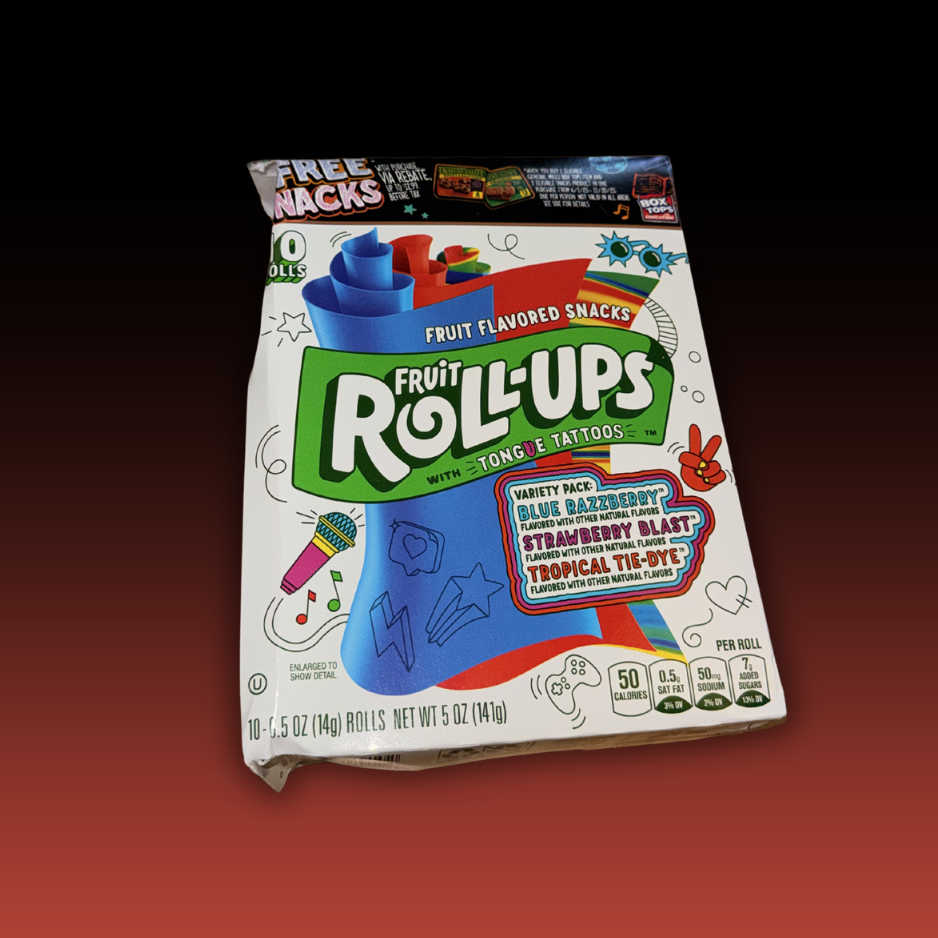 Fruit Roll-Ups Variety Pack features Strawberry Sensation, Tropical Tie-Dye, and Blue Raspberry flavors. With wild flavors and colors, the possibilities for fun are endless. These individually wrapped snack bags are the perfect treat to include in a packed school lunch box. Each roll comes with an assortment of tongue tattoos for wacky fun. These tasty gummy treats are made without gluten, gelatin, or artificial flavors. This variety pack contains vitamin C for snacks you can feel great about. They are the perfect addition to your pantry and a snack every member of the family will love.