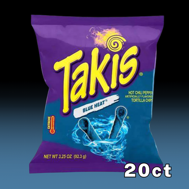 The 20-count pack is perfect for stocking up your pantry, sharing with friends at parties, or enjoying a spicy snack whenever the craving hits. Whether you're a longtime fan of Takis or a newcomer looking to try something daringly different, Takis Blue Heat offers a thrilling snacking adventure that’s sure to satisfy your cravings for heat and flavor. Grab a bag and experience the bold, electrifying taste of Takis Blue Heat!