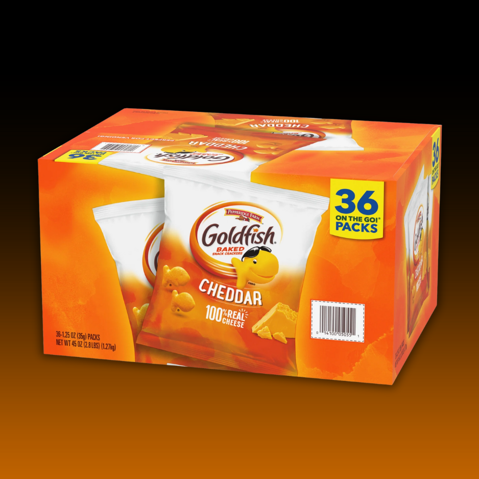Classic Cheddar Taste: Packed with the flavour and crunch you love; these Goldfish Crackers are baked with 100% real cheddar cheese. The Shape You Love: Bring smiles to more guests with the fun Goldfish shape.