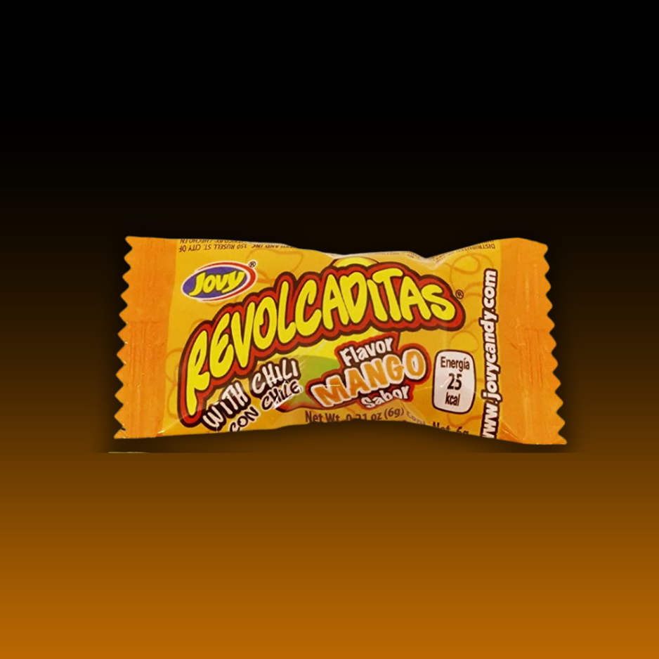 Jovy Revolcaditas Candy - Mango Flavoured Chili Covered Hard Candy with Soft Candy Center - SINGLES
