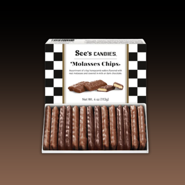 Irresistibly stacked in your favor. Crispy honeycombed wafers flavored with real molasses on the inside, drenched in layers of See's milk or dark chocolate.