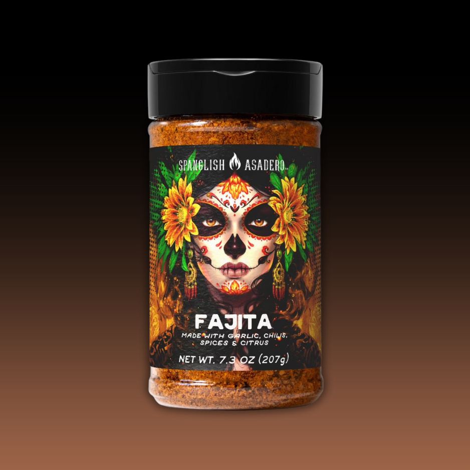 Spanglish Fajita seasoning combines sea salt, garlic, chilis, and spices with a touch of citrus for a flavor that keeps you coming back for more. Perfectly crafted to enhance grilled or seared fajitas, this seasoning is ideal for skirt steak, chicken, shrimp, or vegetables.