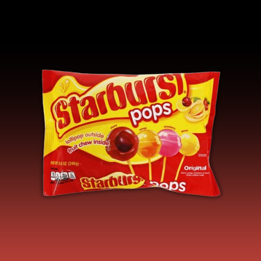 The 8.8 oz. bag of Starburst Pops Original contains 4 delicious flavor pops - an outer lollipop shell and a chewy fruit center. Enjoy the mouth-watering flavors of Cherry, Orange, Strawberry, and Lemon in red, yellow, pink, and orange colors!