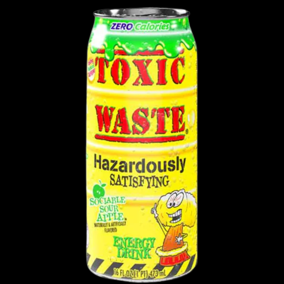 Toxic Waste Energy Drink SOUR APPLE offers a bold, tart apple flavor that packs a punch. This energizing drink fuses the sharp, tangy taste of green apples with the signature sour kick of Toxic Waste, delivering a refreshingly intense experience. Perfect for those who crave a sour jolt of energy, it's a deliciously daring way to power through your day.
